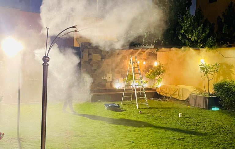 حلولنا المخصصة: نقدم مجموعة متنوعة من أنظمة الضباب والرذاذ لتناسب مختلف المساحات والاحتياجات، سواء كانت حدائق منزلية، ساحات مطاعم، استراحات خارجية، أو غيرها. لدينا أنظمة ضغط عالي لتبريد فعال في المساحات الكبيرة وأنظمة ضغط منخفض .